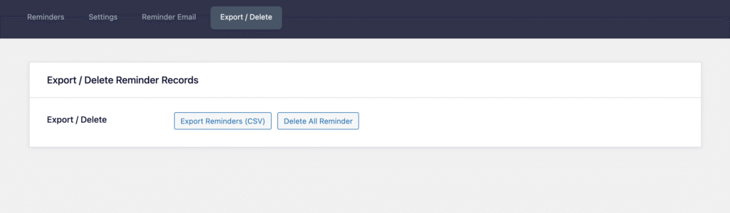 Navigate to (Settings → Arcd Reminders → Export / Delete)